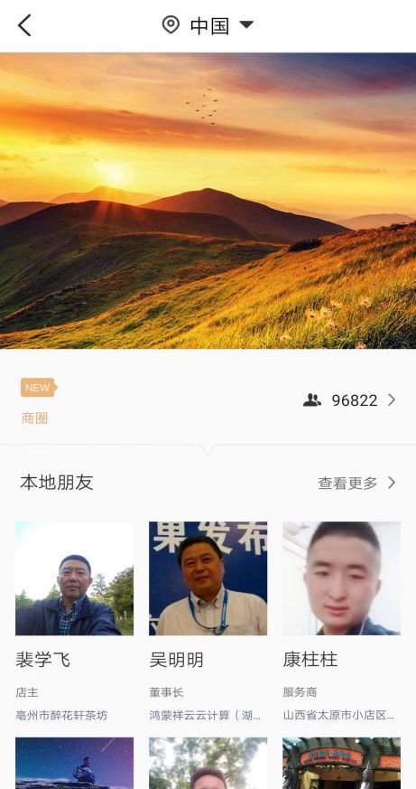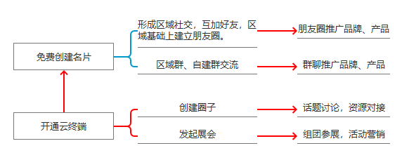 1、云生态从名片开始,免费创建名片形成区域社交,互加好友在区域基础上完成朋友圈。