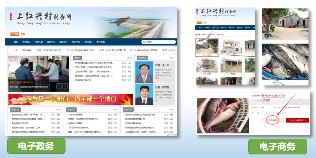 每个村都拥有一个网上商城可进行电子商务。所有村民都可以把家里的农产品放到购物商城里销售、购物。
